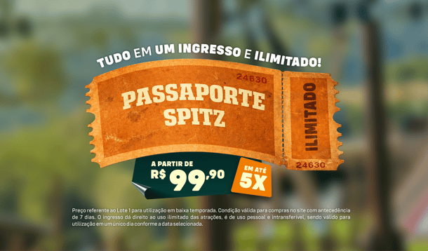 O Passaporte Spitz é o ingresso que garante acesso ao parque e às atrações inclusas, conforme as regras abaixo. Ao adquirir o Passaporte Spitz, o visitante declara ciência e concordância com todas as condições descritas neste regulamento.